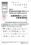 事務員さんの対応もやさしく、弁護士さんもわかりやすく早く対応していただき、感謝して居ります。
